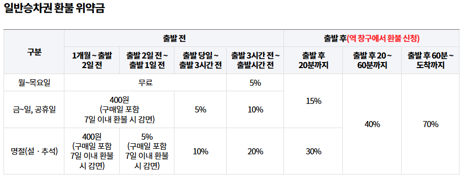 📌 일부 할인승차권은 추가 수수료가 부과될 수 있으며, 반드시 출발 전 취소해야 환불이 가능합니다.