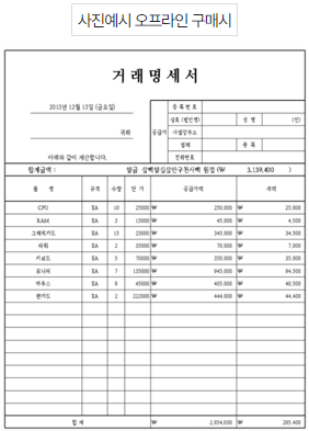 ✅ 온라인 쇼핑몰에서 타인의 ID로 구매 시 : 거래증빙서류(거래내역서 또는 영수증)에 사업신청자 상호명(대표자명)이 확인시 가능합니다.