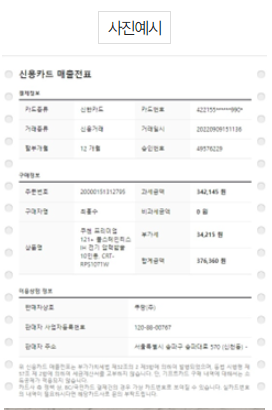 ✅ 한 가지 제품을 두명이 나워서 결제했을 경우 : 구매금액, 구매일자, 상호 등 결제 내역 확인이 가능하다면 영수증이 여러 장이어도 상관없습니다. (총합계가 구매가격과 동일, 하나의 파일로 첨부)