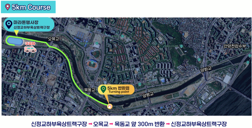 - 5km 코스 : 신정교에서 안양천 목동교까지 왕복