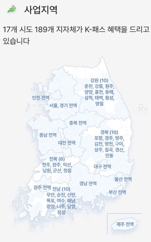 ✅ 17개 시도 189개 시군구에서 K-패스 혜택을 드리고 있습니다.